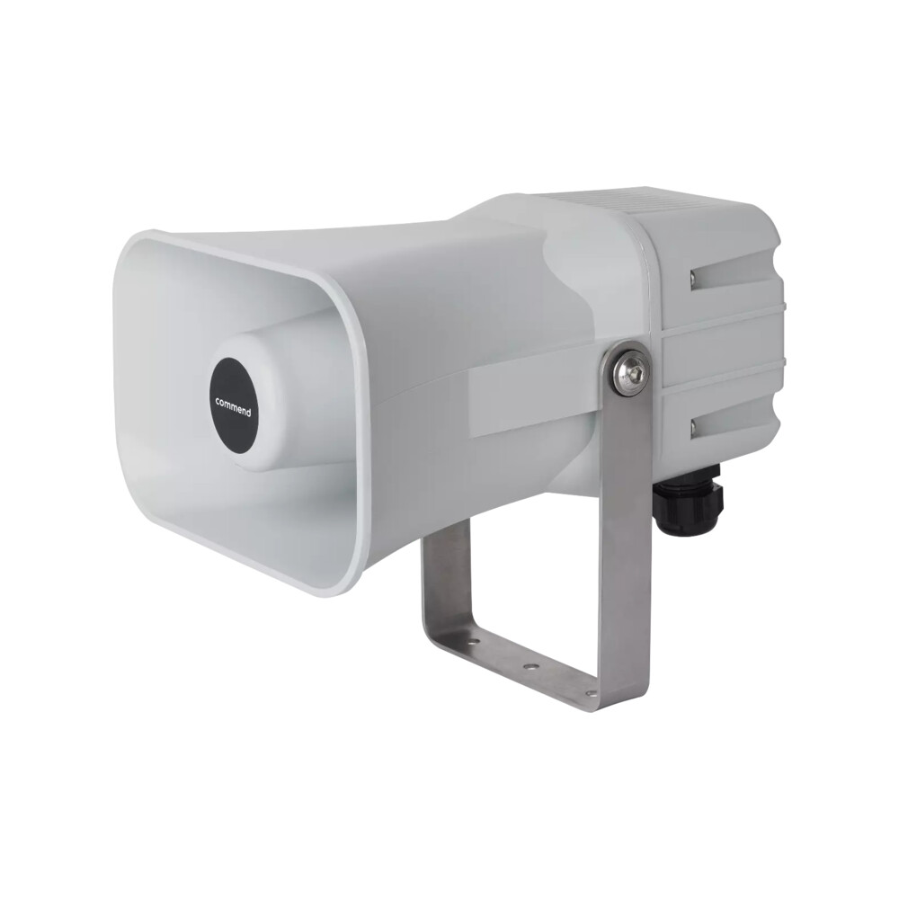 L'altoparlante a tromba IP AFLS 10H HG di Commend è una soluzione robusta e versatile per applicazioni di diffusione sonora e interfono in contesti con elevati livelli di rumore o condizioni ambientali estreme. Grazie al design resistente (IP66 e IK10), è adatto per installazioni in aree industriali, stazioni ferroviarie, terminal autobus e spazi pubblici outdoor. L'amplificatore class-D integrato da 10 W e il driver da 30 W / 4 Ω garantiscono fino a 118 dB di pressione sonora e una copertura direzionale 110° x 55°.