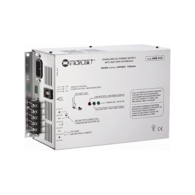 L'alimentatore HSB 115 di MICROSET è un dispositivo compatto e affidabile, progettato per assicurare alimentazione continua e stabile. Eroga 13,5 V DC con una corrente massima di 15 A e una potenza complessiva di 200 W, ideale per applicazioni che richiedono stabilità e sicurezza. Dispone inoltre di una funzione di carica batteria integrata da 4 A, che assicura supporto energetico in caso di mancanza rete, rendendolo adatto anche come sistema di backup.