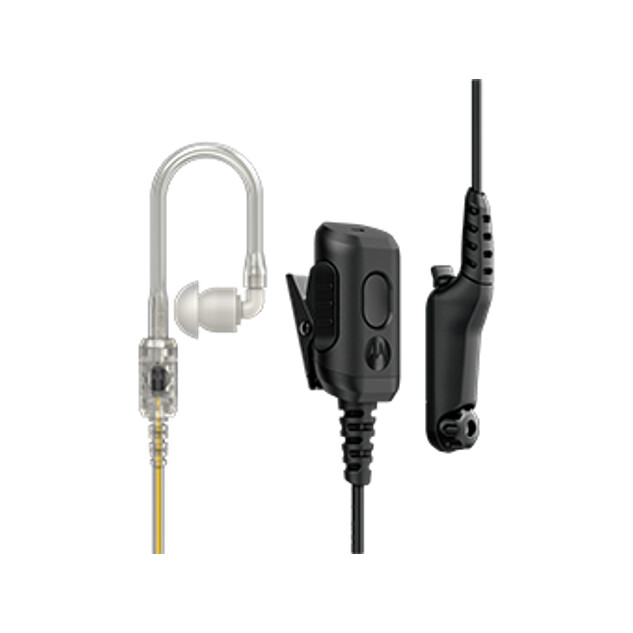 Il kit sorveglianza a 2 fili con archetto trasparente consente comunicazioni discrete anche in ambienti rumorosi, grazie alla separazione tra ricezione e trasmissione audio. Progettato da Motorola, integra microfono, pulsante programmabile e Push To Talk in un accessorio professionale approvato UL.