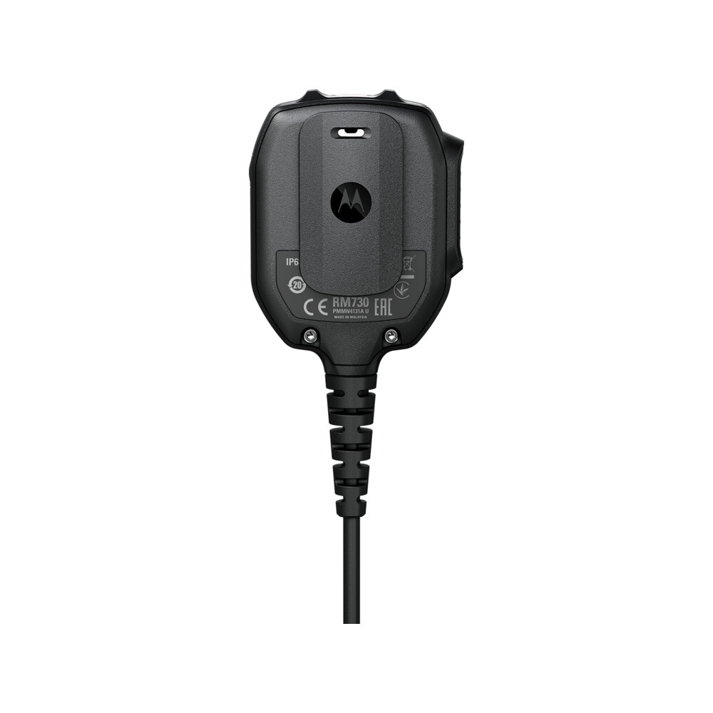 Il microfono remoto RM730 integra tecnologia IMPRES con sistema windporting e altoparlante ad alta potenza per comunicazioni chiare anche in ambienti estremi. Dotato di jack audio da 3,5 mm, pulsante di emergenza e clip girevole discreta, è certificato IP68 e TIA4950 per sicurezza in ambienti pericolosi.