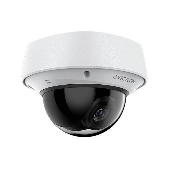 La telecamera dome H6A da 8 MP con ottica varifocale 10,9-29 mm di Avigilon offre una copertura ad alta risoluzione ideale per aree critiche. Dotata di illuminazione IR, analisi video e audio integrate, e compressione H.265 con SmartCodec, è progettata per un monitoraggio professionale con uso ottimizzato delle risorse.
