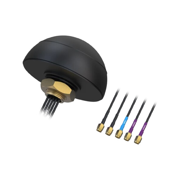 Soluzione ideale per router Teltonika 5G (es. ATRM50, RUTC50, RUTM50, RUTX50) o gateway mobilità che necessitano connettività multi-classe, precisione GNSS e performance Wi-Fi integrate in un'antenna robusta e facilmente installabile