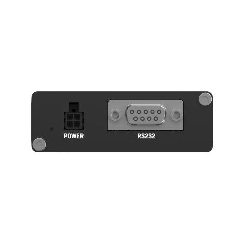 Dispone di porta RS232 (DB9), porta Gigabit Ethernet (LAN), interfaccia micro-USB, slot Mini-SIM, antenna LTE SMA e connettore industriale a 4 pin per alimentazione DC (9-30 V) e ingressi/uscite digitali configurabili (I/O juggler).