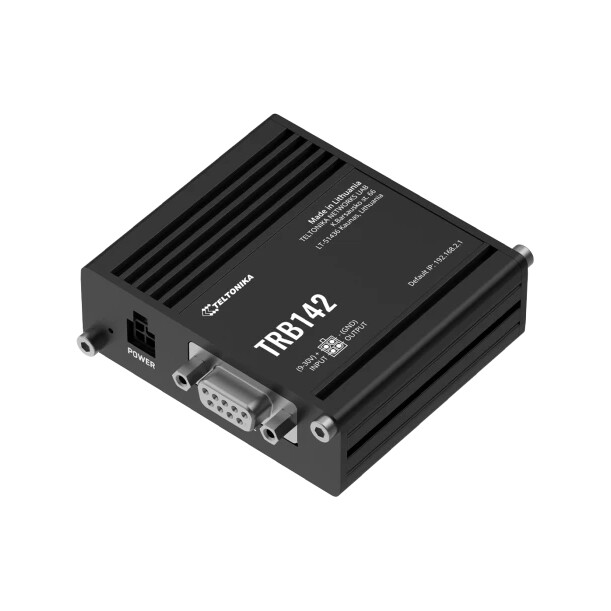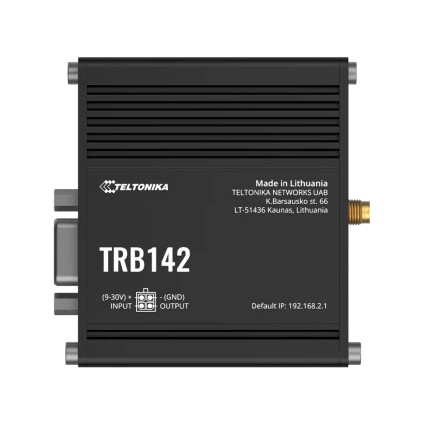 Il TRB142 è un gateway industriale estremamente compatto (74,5 - 25 - 64,4 mm, circa 135 g) con connettività LTE Cat 1 fino a 10 Mbps in download e 5 Mbps in upload, e compatibilità 3G/2G di backup.