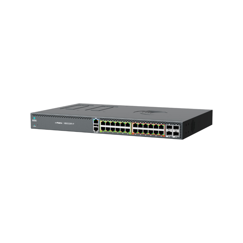 Il Cambium Networks cnMatrix EX3028G-P, modello MX-EX3028GxPA-10, è uno switch enterprise di nuova generazione progettato per ambienti professionali ad alta densità . Dispone di 24 porte 1/2,5 GbE con supporto PoE++ (802.3bt) fino a 90 W per porta e un budget complessivo di 1440 W, oltre a 4 uplink SFP28 1/10/25 GbE per connettività ad alte prestazioni.