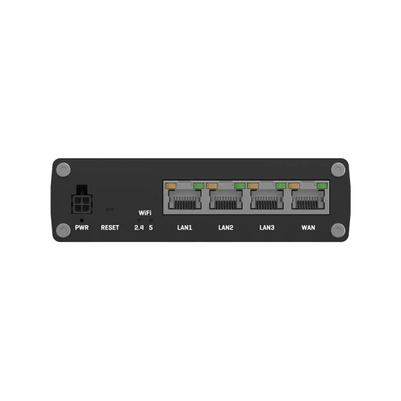 Il sistema RutOS (basato su OpenWrt) è gestito da CPU quad-core ARM Cortex-A7 717 MHz con 256 MB RAM DDR3 e 256 MB SPI Flash. Offre firewall avanzato, VLAN port-/tag-based, routing statico/dinamico (BGP, OSPF, RIP, EIGRP, NHRP), policy routing, QoS/SQM, NAT, DDNS, DNS over HTTPS e hotspot con captive portal interno o Radius.