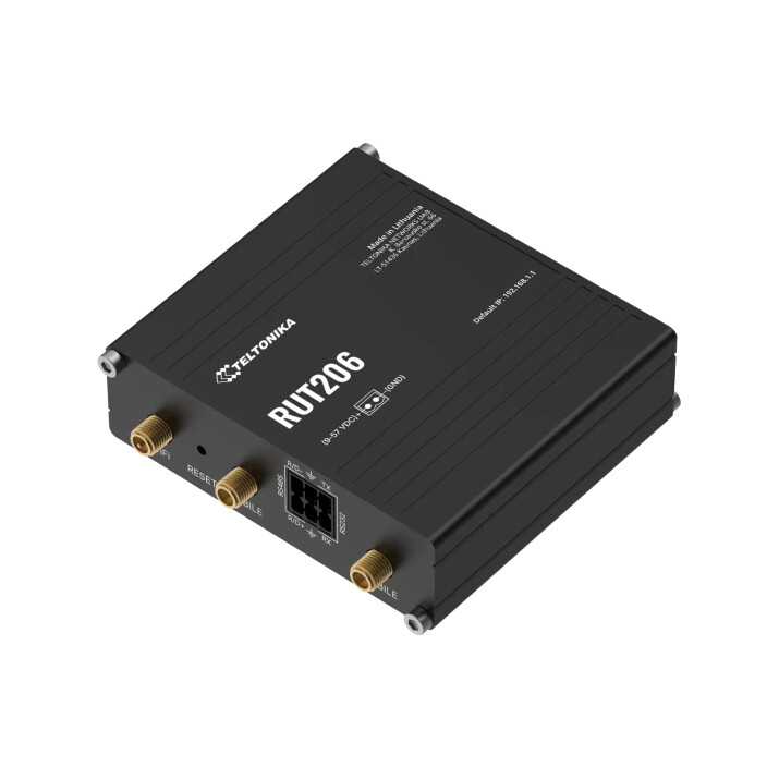 Il RUT206 è un router cellulare industriale pensato per applicazioni M2M e IoT in ambienti industriali. Fornisce connettività ad alta affidabilità via 4G LTE Cat 4, Wi-Fi (802.11b/g/n) e Ethernet, con failover automatico tra WAN cablata, cellulare o Wi-Fi. E' ideale per integrare macchine CNC nuove e legacy grazie al supporto RS232 e RS485 e protocolli come Modbus, DNP3 e DLMS, garantendo continuità operativa anche su impianti esistenti. L'ingegneria robusta include alloggiamento in alluminio IP30, alimentazione flessibile (ingresso DC 9-57 V, PoE attiva o passiva), doppia SIM per ridondanza, micro-SD fino a 2 TB e gestione remota tramite SMS, email o RMS.