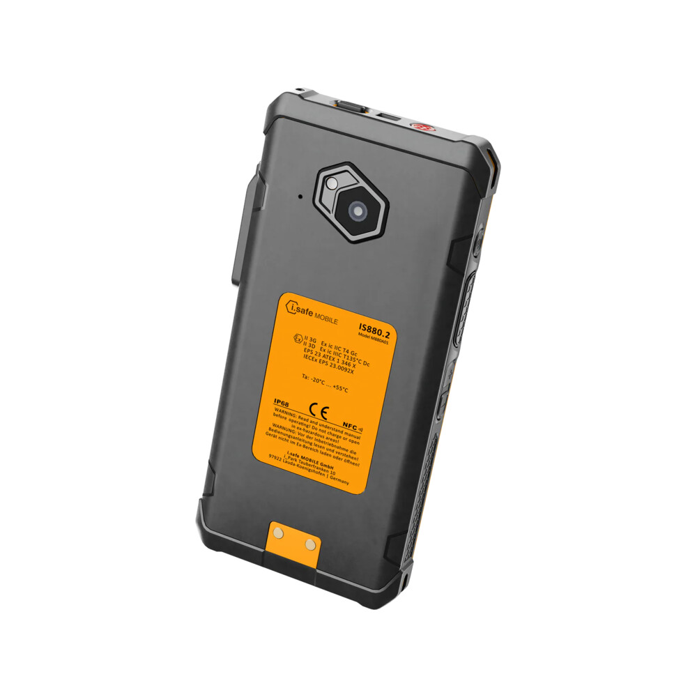 L'i.safe IS880.2 è uno smartphone industriale ad alte prestazioni, progettato per un utilizzo sicuro in aree a rischio esplosione Zone 2/22. Grazie al sistema operativo Android 14 e al processore Qualcomm Snapdragon Octa-Core, assicura potenza e fluidità operativa anche con applicazioni professionali complesse. Il dispositivo è equipaggiato con una memoria interna da 128 GB, espandibile con microSD fino a 128 GB, e supporta la connettività 4G, WiFi dual band, Bluetooth 5.1 e NFC. Il display da 5,5" con Rug Display Glass garantisce resistenza e leggibilità, mentre la fotocamera posteriore da 50 MP permette acquisizioni di alta qualità anche in contesti di lavoro impegnativi. La batteria sostituibile da 4500 mAh offre autonomia estesa, rendendo lo smartphone adatto a turni di lavoro prolungati. Con protezioni IP68 e MIL-STD-810H, è in grado di resistere a polvere, acqua e condizioni operative estreme.