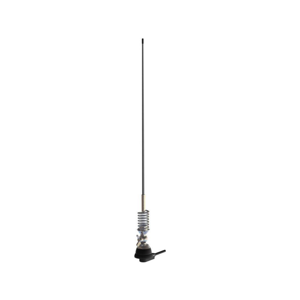 La struttura prevede molla in acciaio inox cromato bianco e stilo in fibra di vetro con verniciatura poliuretanica nera. Il peso netto è di 650 g e la lunghezza totale dello stilo è 1350 mm. La temperatura operativa è compresa tra -40 e +80 gradi Celsius. La connessione di montaggio è M6x1, con foro di montaggio 24 mm. La base ha altezza 40 mm e diametro 43 mm.