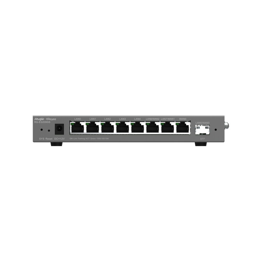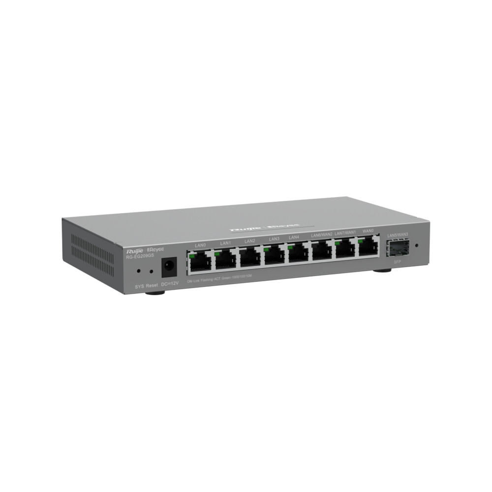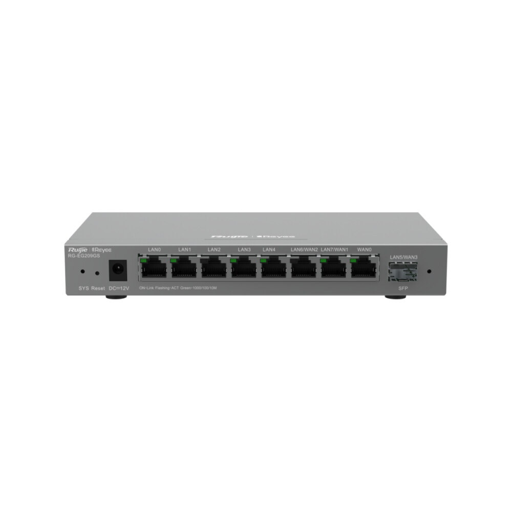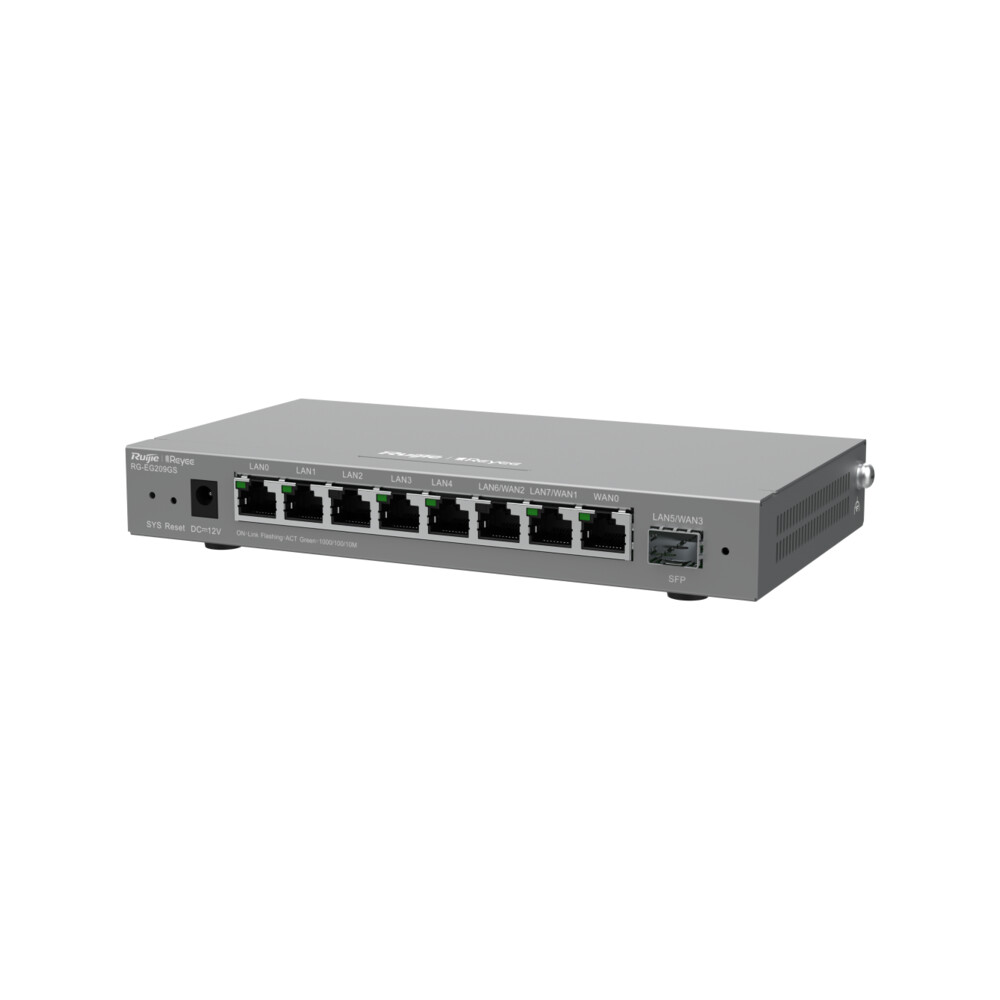Il router Ruijie Reyee RG-EG209GS della Serie EG200 è un dispositivo cloud managed con 9 porte Gigabit/SFP. Progettato per reti aziendali, offre VPN, bilanciamento del carico e sicurezza avanzata, con gestione centralizzata tramite Ruijie Cloud.
