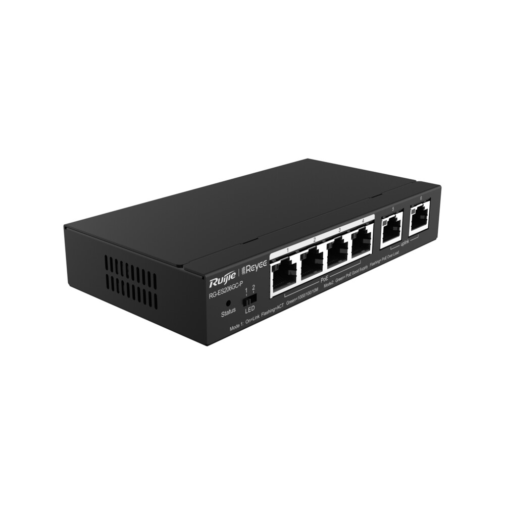 Il Ruijie Reyee RG-ES206GC-P è uno switch smart cloud con 6 porte Gigabit, di cui 4 PoE+. Progettato per reti TVCC e piccoli uffici, permette alimentazione diretta di dispositivi compatibili e gestione centralizzata tramite Ruijie Cloud.