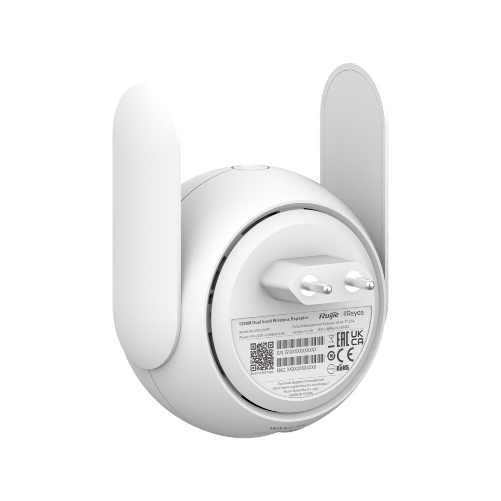 L'extender Wi-Fi Mesh dual-band AC1200 Ruijie Reyee è progettato per estendere la copertura wireless indoor grazie alla tecnologia Mesh e agli amplificatori di segnale integrati, capaci di migliorare la penetrazione attraverso muri e ostacoli. Supporta le bande 2,4 GHz e 5 GHz e può essere gestito tramite Ruijie Cloud per una configurazione semplice e un controllo centralizzato della rete.