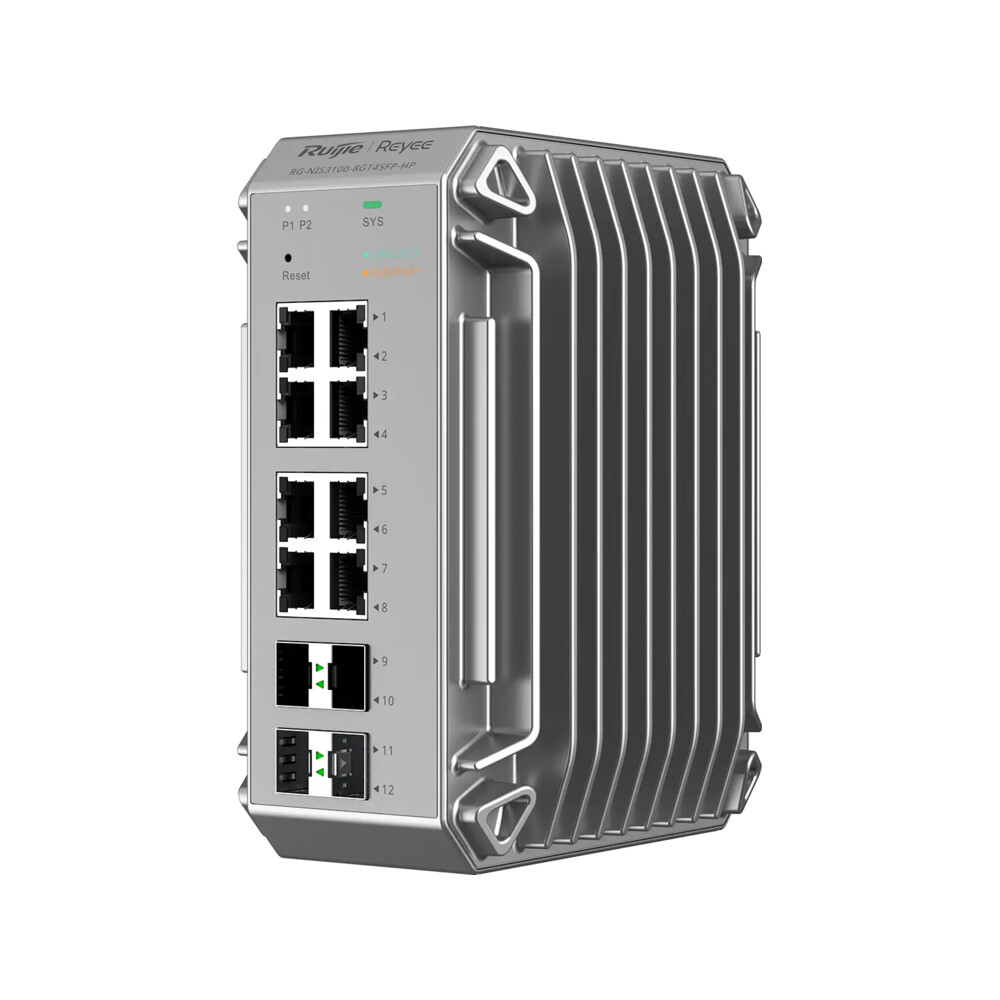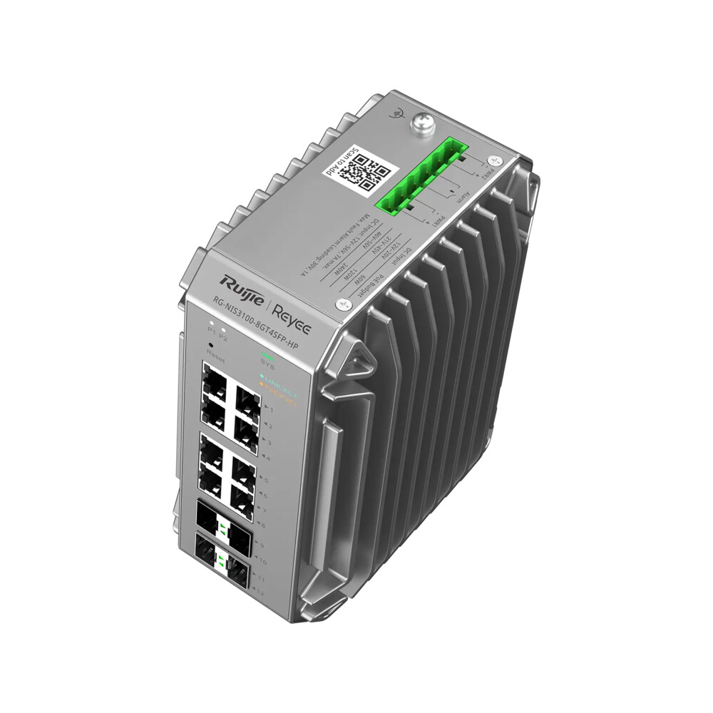 Lo switch industriale Layer 2 Ruijie Reyee RG-NIS3100-8GT4SFP-HP con 8 porte 10/100/1000BASE-T PoE+ e 4 uplink SFP da 1 Gbps è pensato per reti mission-critical che richiedono prestazioni elevate e continuità operativa. L'alimentazione PoE da 240 W, compatibile con gli standard 802.3af/at, consente di supportare dispositivi come telecamere IP, access point Wi-Fi e telefoni VoIP.