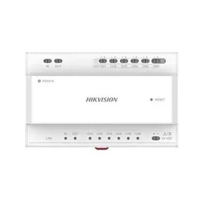 The Hikvision 6-port 2-wire DIN rail distributor is designed for 2-wire IP distribution in installations requiring neat and convenient DIN rail integration. The Hikvision solution provides 6 2-wire cascade interfaces with device power, along with 2 cascade interfaces dedicated to the DS-KAD704Y, DS-KAD706Y, and DS-KAD706Y-S series.