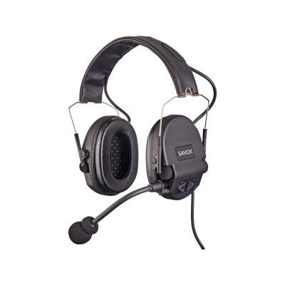 The Savox Noise-COM 300 K6100100420 headset is designed for professionals working in noisy environments, offering hearing protection and reliable communication. Compatible with the Motorola MXP600 and R7 radios, it features a noise-canceling microphone and an ergonomic PTT button on the left cup, allowing for instant control even with gloves.