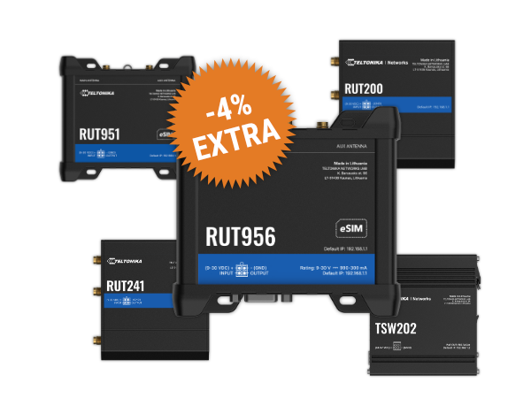 Take advantage of the extra 4% discount on the 25% reseller discount, designed to best support your connectivity projects with reliable, high-performance and immediately available Teltonika solutions.