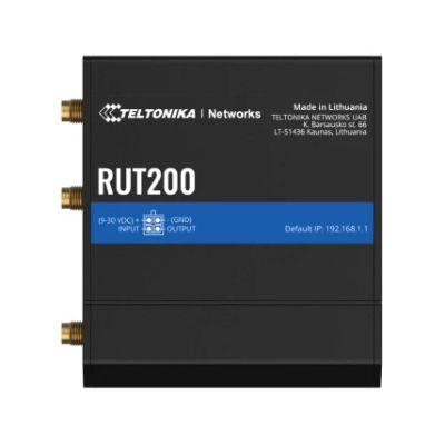 Il router industriale RUT200 offre connettività LTE Cat 4, Ethernet e Wi-Fi per applicazioni IoT, mobili o industriali. Dotato di due porte Ethernet, supporta dual SIM (failover) e antenne esterne per rete cellulare e Wi-Fi. Include I/O digitali e funzioni avanzate di sicurezza e gestione, accessibili da remoto tramite Teltonika RMS.