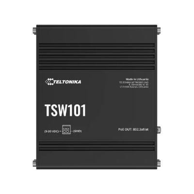 Il TSW101 è uno switch unmanaged Teltonika dotato di 5 porte RJ45 Gigabit Ethernet (10/100/1000 Mbps), di cui 4 supportano alimentazione PoE+ secondo standard IEEE 802.3af/at (Alternative A), fino a 30 W per porta con un budget totale di 60 W. Alimentabile con tensione da 9 a 30 VDC tramite connettore industriale a 2 pin, è ideale per installazioni in veicoli e ambienti industriali.