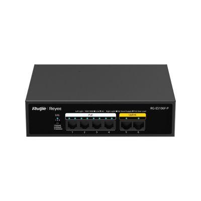 Il Ruijie Reyee RG-ES106F-P è uno switch desktop non gestito progettato per reti compatte. Dispone di 6 porte Fast Ethernet 10/100 Mbps, con 4 porte PoE che permettono di alimentare direttamente access point, telecamere IP o telefoni VoIP.