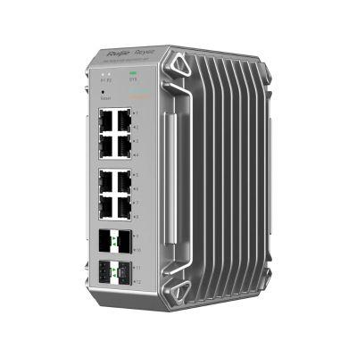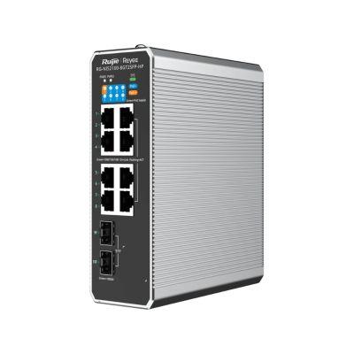 Lo switch industriale Layer 2 Ruijie Reyee RG-NIS2100-8GT2SFP-HP con 8 porte 10/100/1000BASE-T PoE++ e 2 uplink SFP da 1 Gbps è ideale per reti industriali e aziendali che richiedono alimentazione diretta di dispositivi ad alta potenza come telecamere IP PTZ, access point Wi-Fi e telefoni VoIP avanzati.
