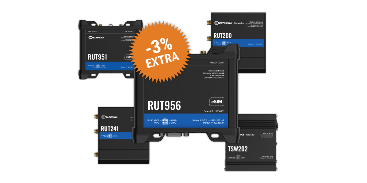 Approfitta dello sconto extra del 3% sullo sconto rivenditore del 25%, pensato per supportare al meglio i tuoi progetti di connettività con soluzioni Teltonika affidabili, performanti e subito disponibili.